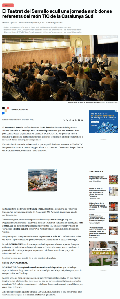 L’acte ha comptat amb el suport de la Generalitat de Catalunya i ESADE, i s’ha emmarcat dins del compromís de DonaDigital per impulsar lideratges femenins i visibilitzar el talent de les dones que ja estan transformant el món digital a Catalunya.