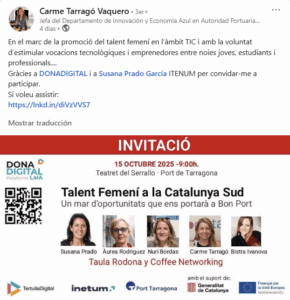 Carme Tarragó participa en la jornada “Talent Femení a la Catalunya Sud” per impulsar vocacions tecnològiques (LinkedIn)