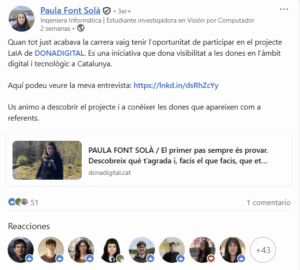 Paula Font Solà destaca la importància de visibilitzar les dones en el sector digital a través del projecte LaIA (LinkedIn)