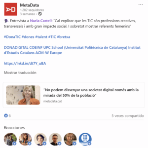 MetaData destaca una entrevista a Nuria Castell sobre el paper de les dones en el món digital (LinkedIn)
