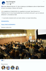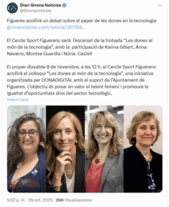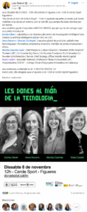 Laia Dulcet convida a la jornada “Les dones al món de la tecnologia” organitzada per DONADIGITAL a Figueres (LinkedIn)
