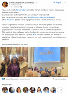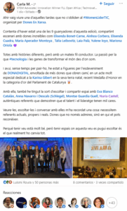 Laia Dulcet destaca l’impacte de la jornada “Les dones al món de la tecnologia” i reconeix Carla M. com a veu inspiradora (LinkedIn)