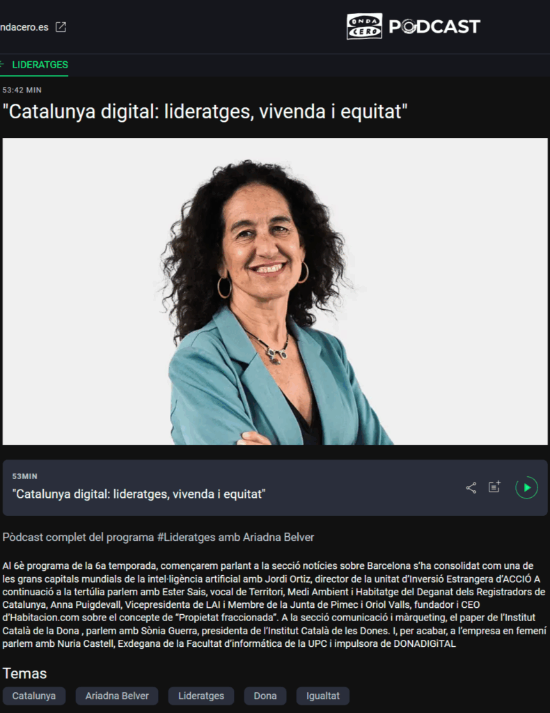 Núria Castell parla sobre DONADIGITAL al podcast “Catalunya Digital” d’Onda Cero Catalunya (Onda Cero Catalunya)Per alex / octubre 13, 2025 Font: Onda Cero Catalunya, 09/10/2025