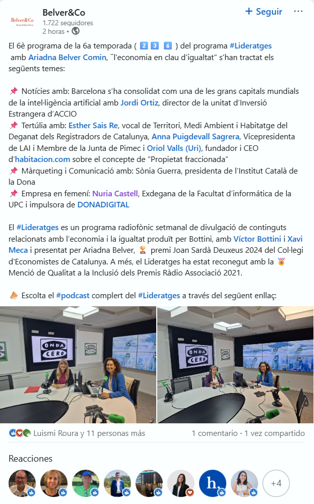 Núria Castell parla sobre DONADIGITAL al programa «Lideratges» d’Onda Cero Catalunya (LinkedIn)Per alex / octubre 13, 2025 Font: Belver&Co (LinkedIn), 13/10/2025