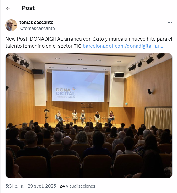 Tomas Cascante comparteix l’èxit del llançament de DONADIGITAL i el seu impacte en el talent femení TIC (X)Per alex / octubre 9, 2025 Font: Tomas Cascante (X), 29/09/2025