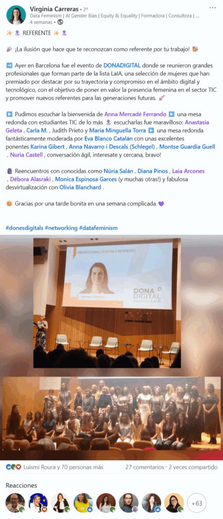 Virginia Carreras comparteix la seva experiència com a referent a l’esdeveniment DONADIGITAL (LinkedIn)Per alex / octubre 9, 2025 Font: Virginia Carreras (LinkedIn), 10/09/2025